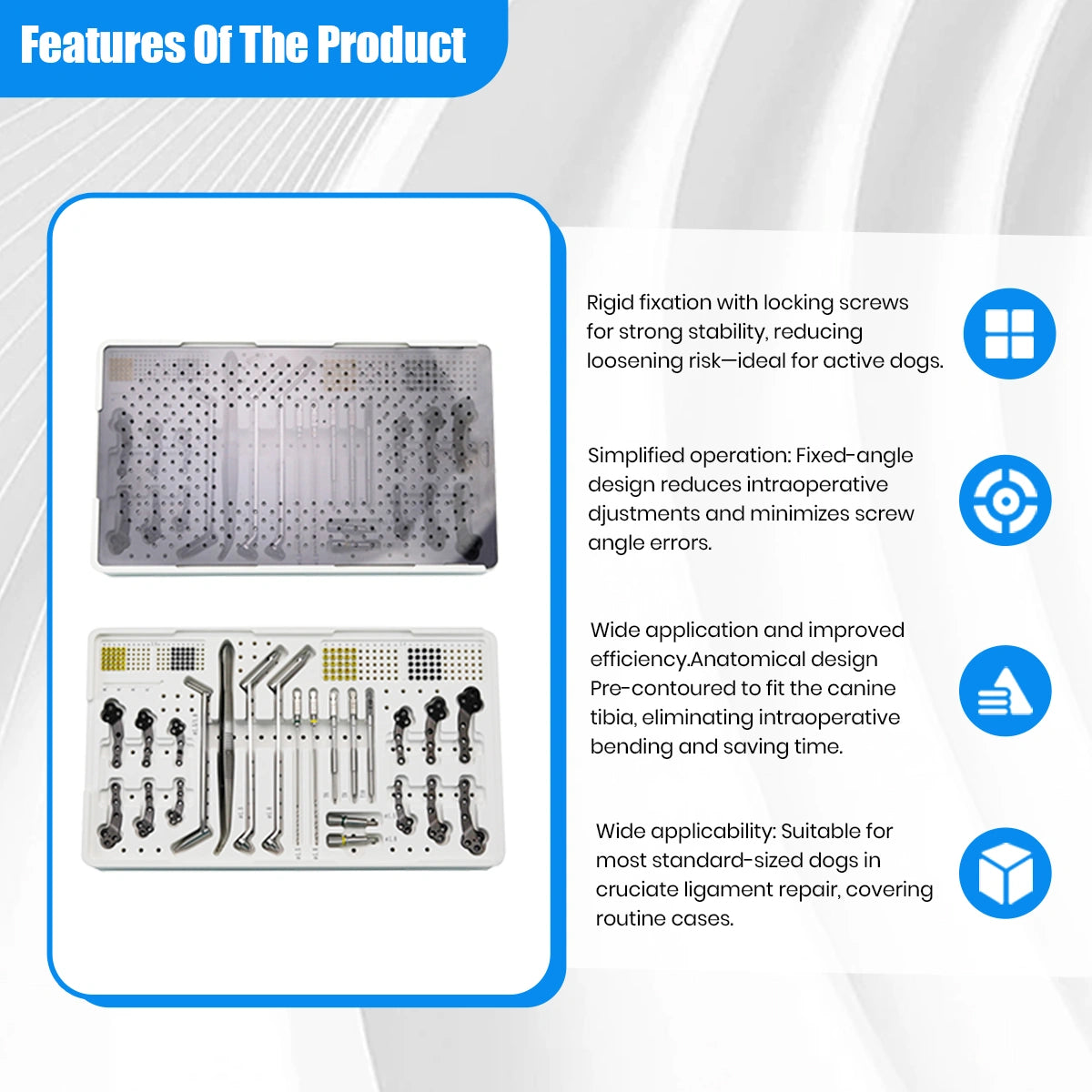 - Comprehensive TPLO Instrument Set: Covers all essential tools for CCL repair, TPLO, and stifle reconstruction in small to medium dogs.